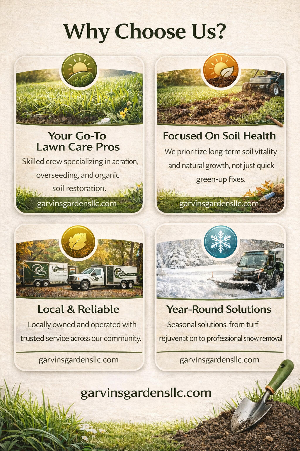We restore lawn health from the ground up using core aeration and organic soil rebuilding. This improves root strength, nutrient absorption, and long-term turf performance.